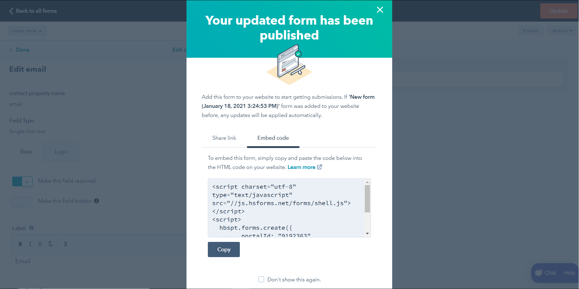 Step 11 : Now you can share your form using share link or can get Embed Code.