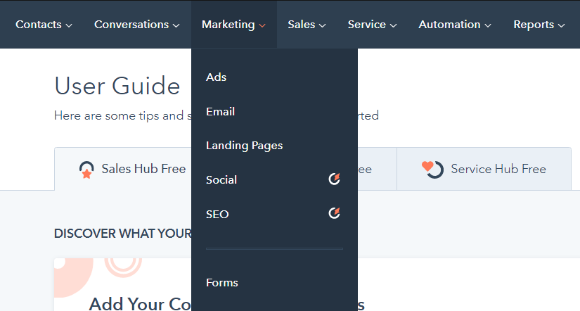Step 2 : After successful Login go to marketing on top header menu on your dashboard.