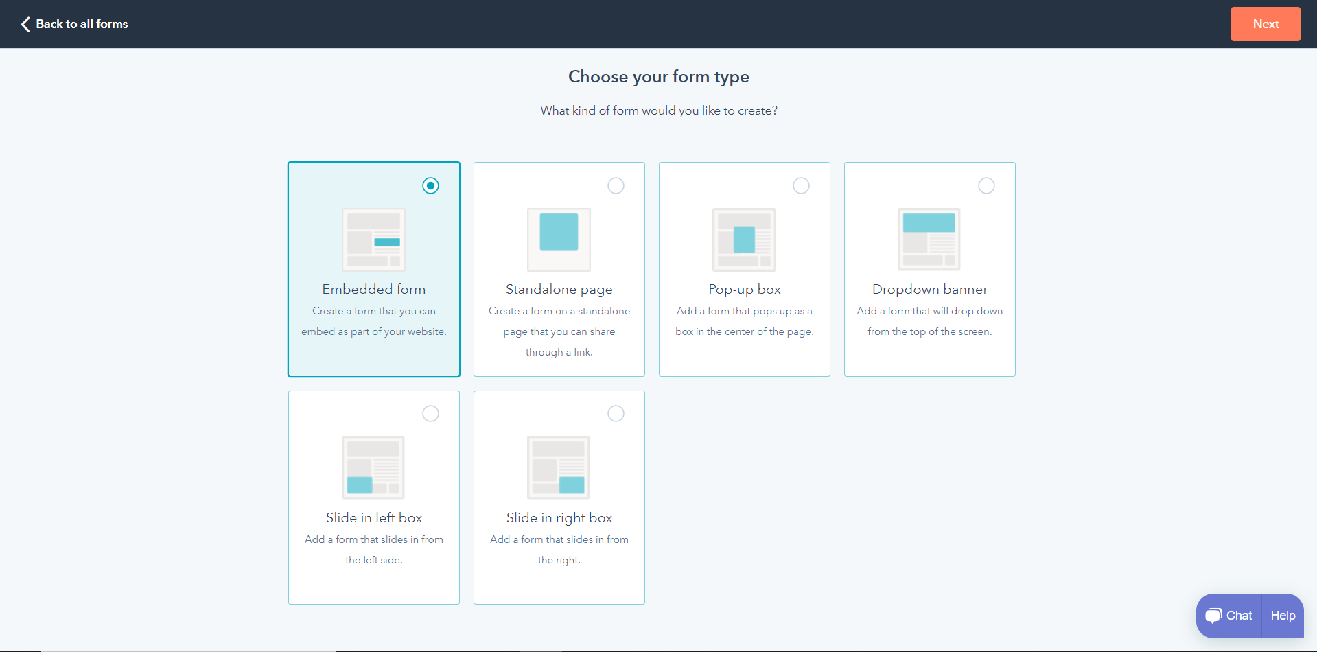 Step 5 : Choose your Form type (Embedded Form) & Click Next on top right.